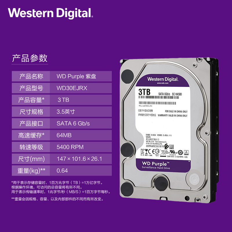 Western Digital WD WD30EJRX surveillance grade hard disc purple disc 3T 3 5-inch desktop SATA3 3T