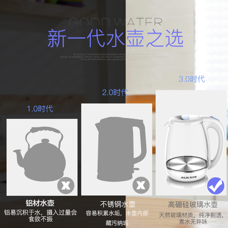 Ox Glass Electric Heat Burning Water Pot For Water Home Transparent Automatic Power Cuts Large Capacity Small Saucepan of tea brewing