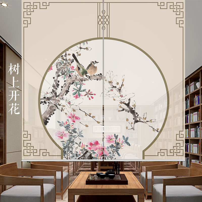 New Chinese style curtain rolling curtain hanging curtain living room partition curtain landscape painting hanging curtain door curtain office screen curtain