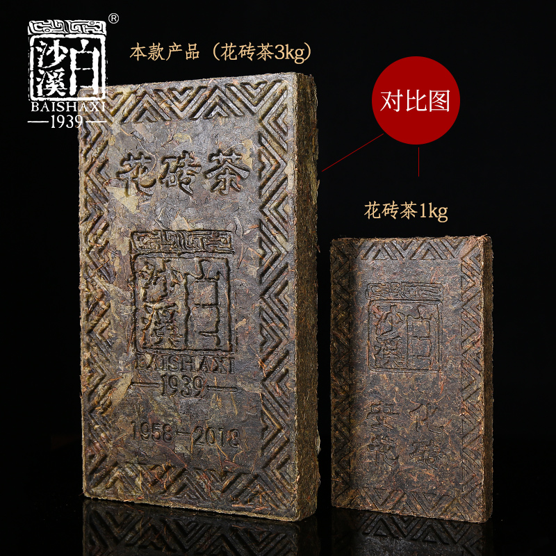 Hunan Anhua Black Tea Culture Festival White Sand Brook Zhengzong Barren Mountain Limited Auspicious 1958 Flowers Brick Tea 3kg