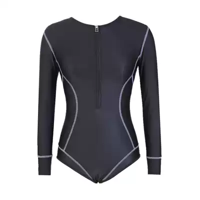 Vanliga sunscreen diving suit zipper long sleeve swimsuit female one-piece black slim slim vacation surf suit