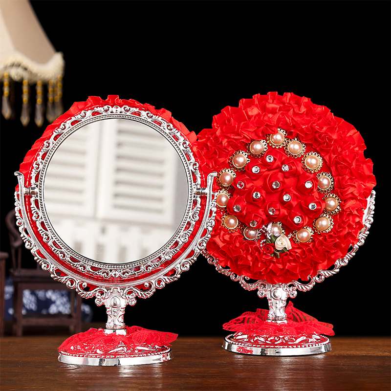 Bride makeup mirror wedding accessories dowry wedding red mirror a pair of high-grade European style small wedding dowry