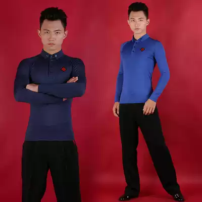 Miki Danshi Modern dance Adult male polo collar top Long-sleeved national standard dance waltz social dance dance costume