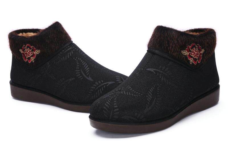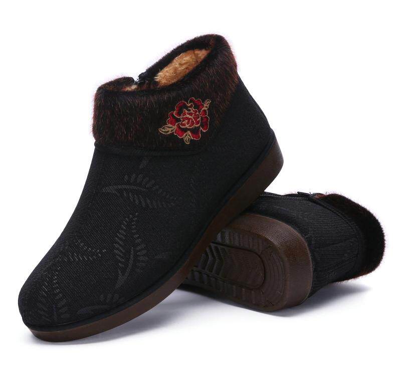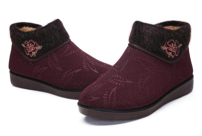Winter Women Cotton Shoes Old Beijing Cloth Shoes Thickening Suede Middle Aged Mother Shoes Non-slip Old Lady Big Size 42 Grandma Shoes