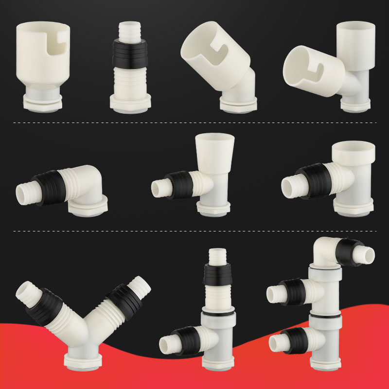 Direct joint straight through joint (with anti-spill hydraulic) 45 degree elbow 90 degree elbow (with anti-overflow ring) 45 degree three circuit (simultaneously plug 2 pipes) 90 degree three circuit (one side)