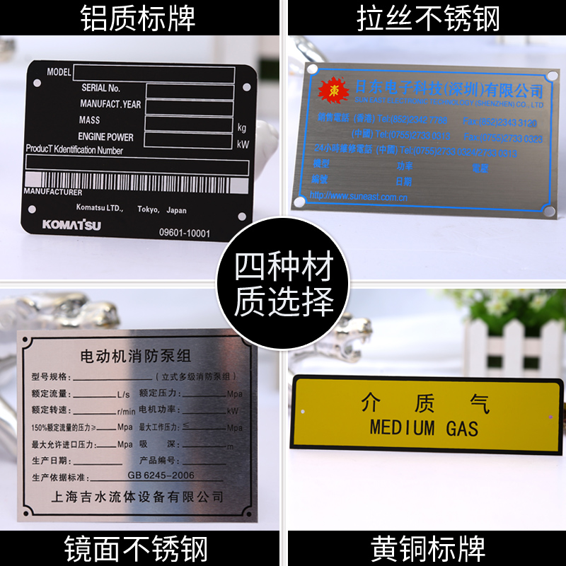 Label machinery and equipment Metal aluminum nameplate custom stainless steel copper pvc panel corrosion screen printing UV custom production