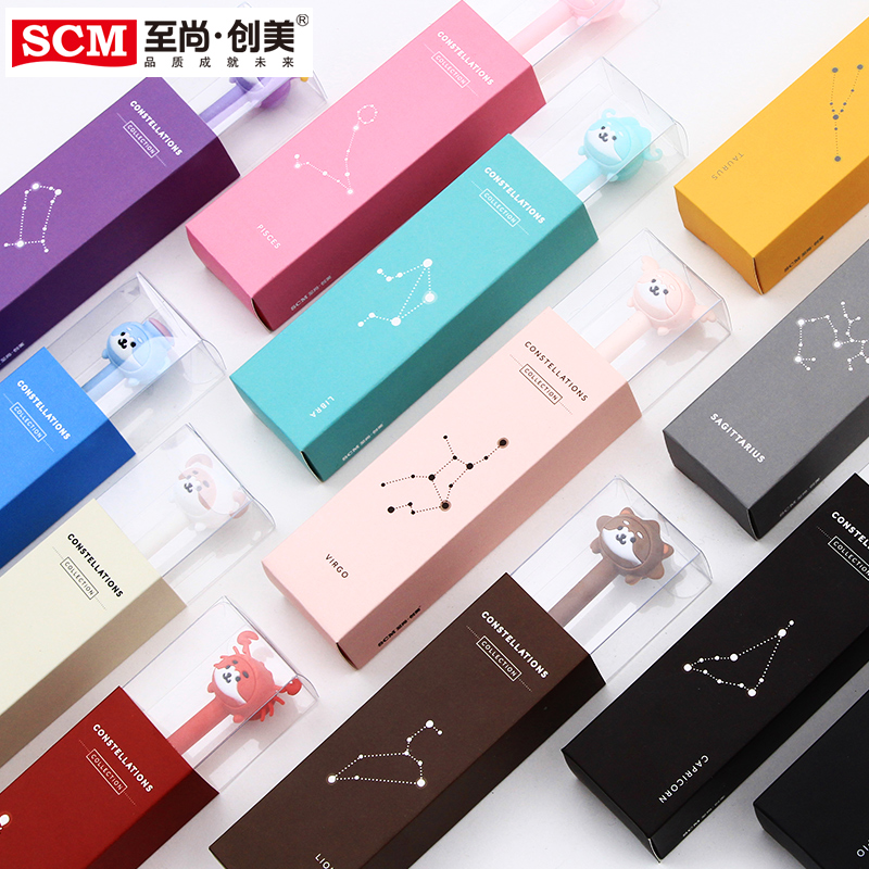 To Shangsh-mei twelve Constellation Neutrino pen GOGO Dog series Student Creative Constellation Pen students use 0 5 black water-based pen signature pen cute cartoon Constellation Pen Gift Box Dress