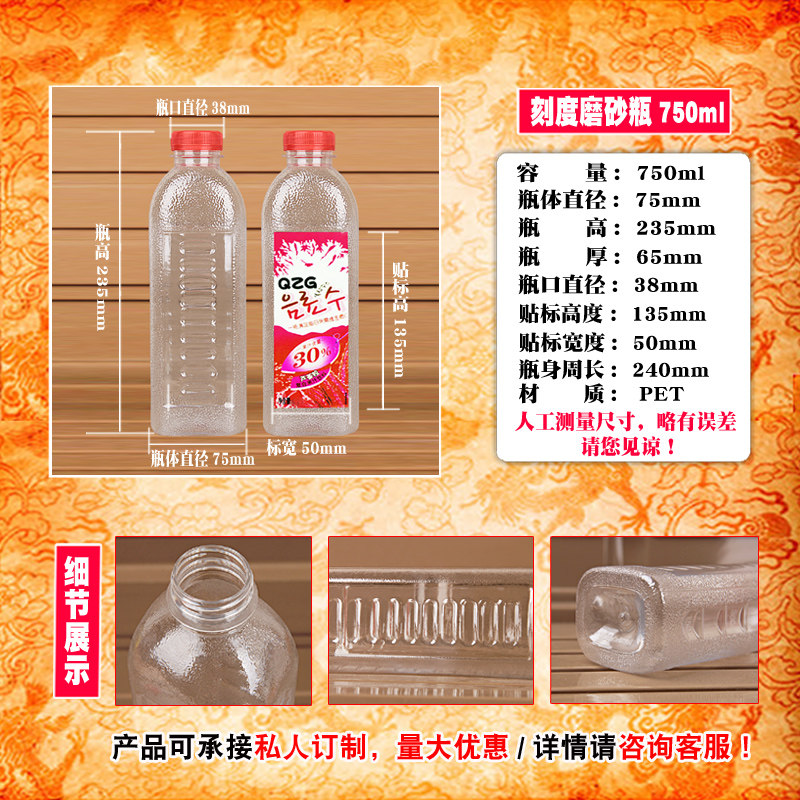 With scale frosted 750ML transparent plastic bottle sub split air drink sample PET disposable food grade with lid