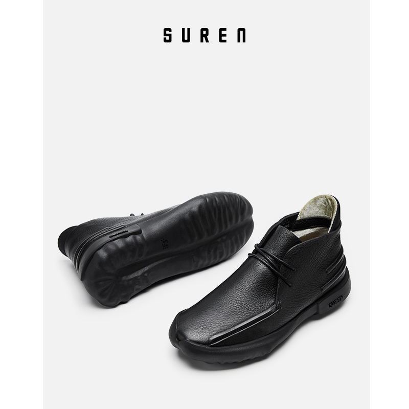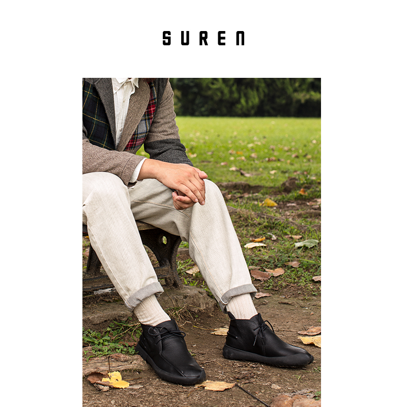 Vegetarian SUREEN autumn winter new lacing short boots Men's black boots genuine leather and nude boots masculine warm 098