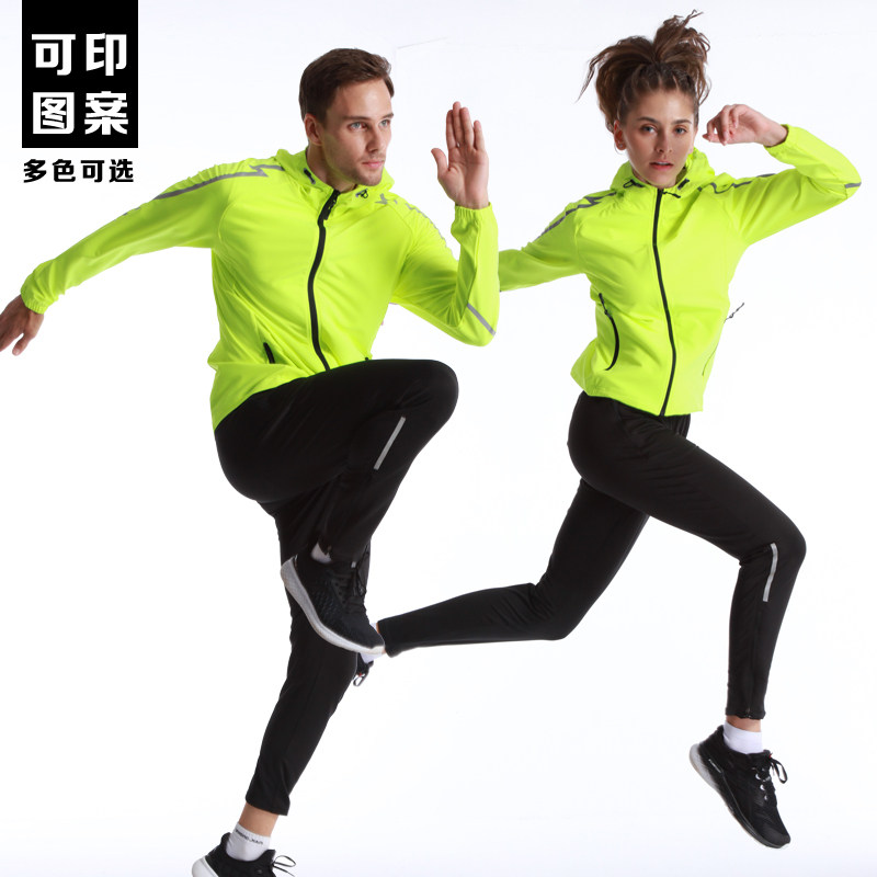 Couple's sports jacket Running windbreaker outdoor casual jacket Custom printed logo reflective hooded night running suit