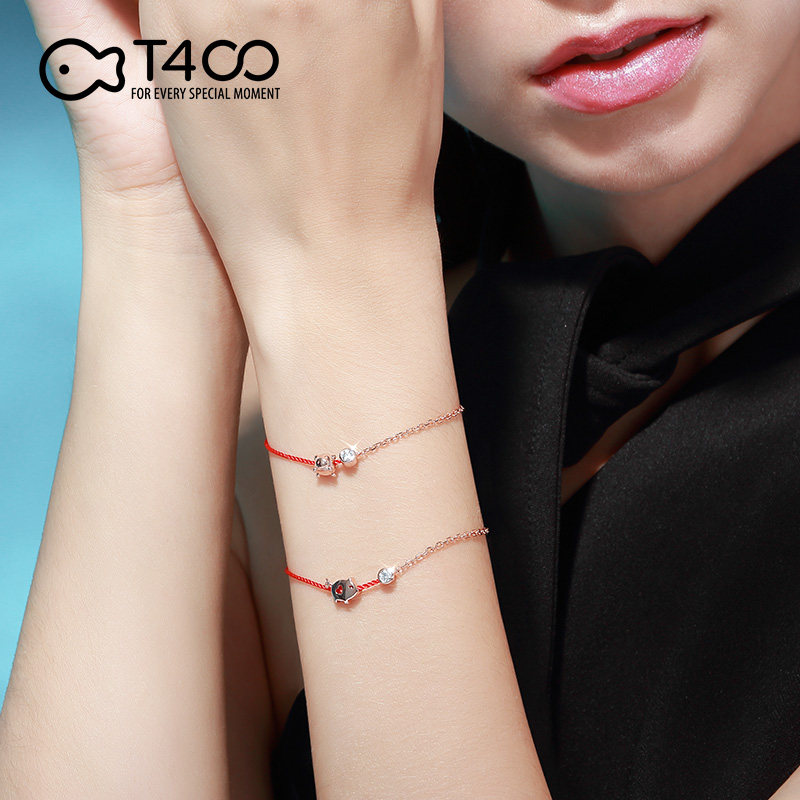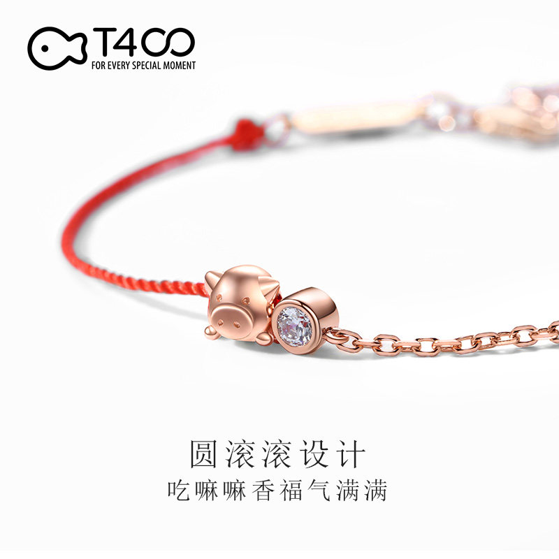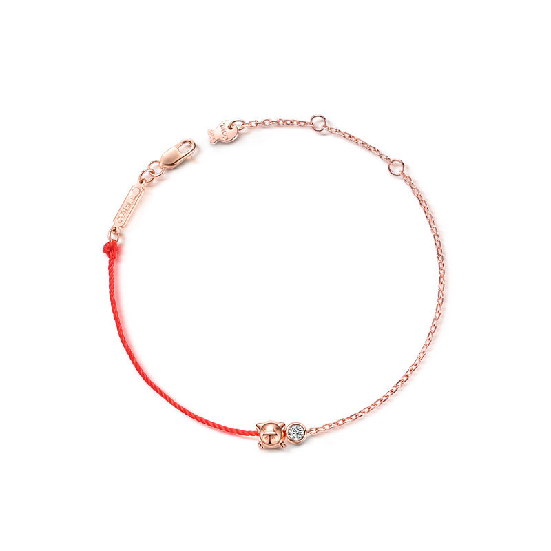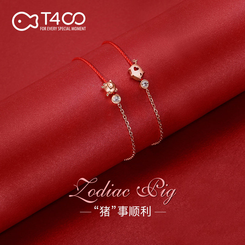 T400 sterling silver bracelet Female year of life red rope pig hand rope Zodiac couple genus pig jewelry Year of life gift