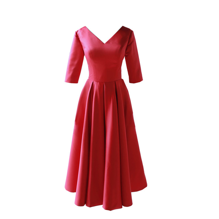 (white autumn) minimalist retro red satin V collar strap small gown toast.