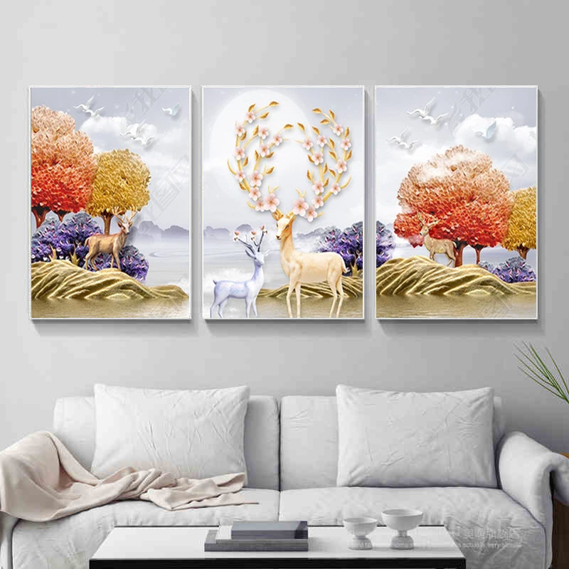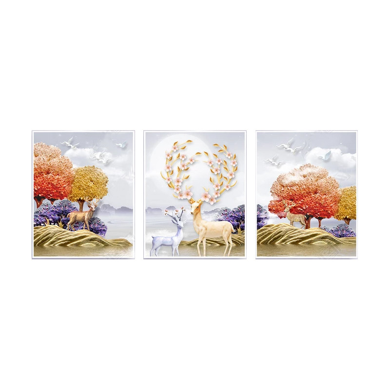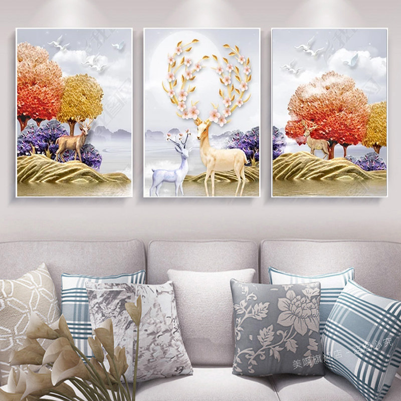 5d diamond painting full of diamond hair Cairoe deer point sticking and drilling cross embroidered diamond embroidered 2021 new living room Eurostyle triptych