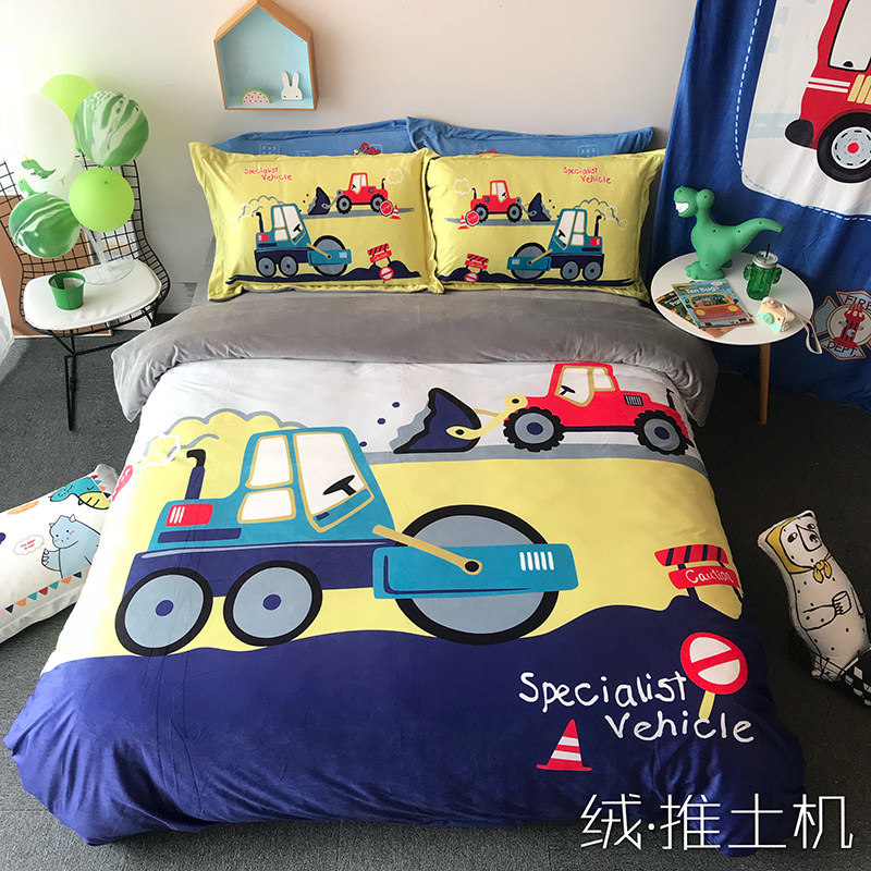 Baby velvet coral fleece children's bed three-piece set boy 1 5m1 35 dinosaur thickened bed sheet quilt cover four-piece set