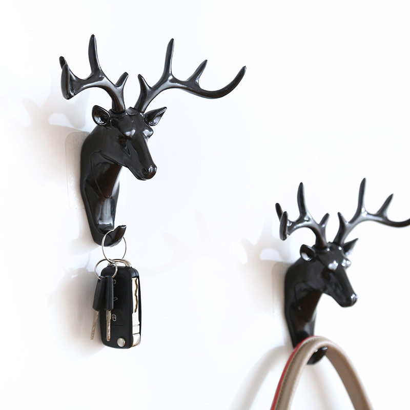 Deer head decorative hook Wall-mounted entrance key storage creative door shelf Wall hanging clothing sticky hook
