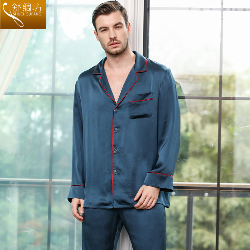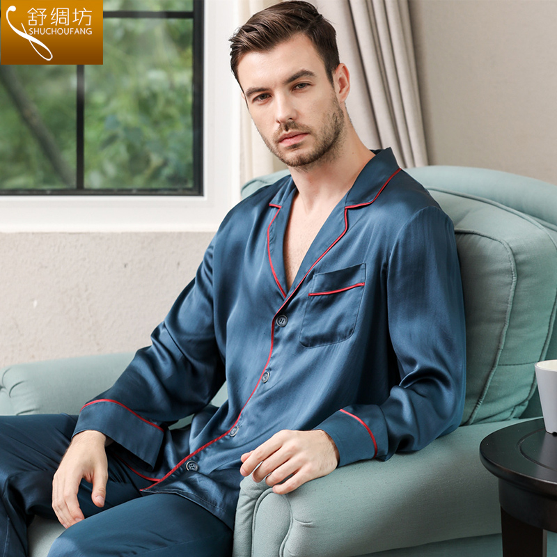 Shu Silk Square heavy silk pajamas men's long-sleeved trousers silkworm silk home clothing two-piece set spring and summer