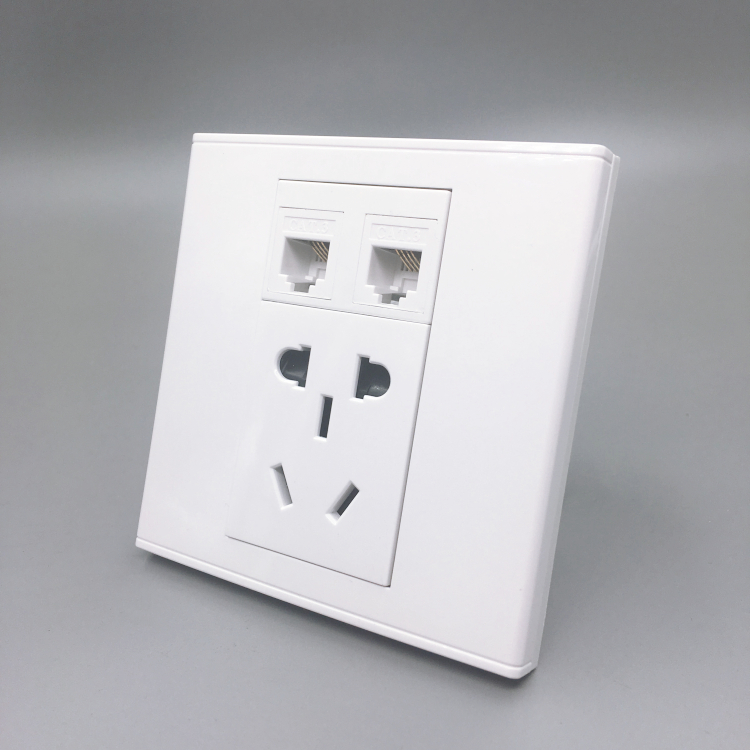 Double phone plus national standard five-hole power socket Two-level telephone connector with two-level switch panel 86 Type