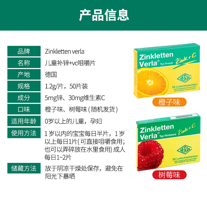 German zinc flake Verla baby boy pregnant woman Zinc Supplements Zinc chewable tablets Vitamin VC Open Stomach for Immune Appetite
