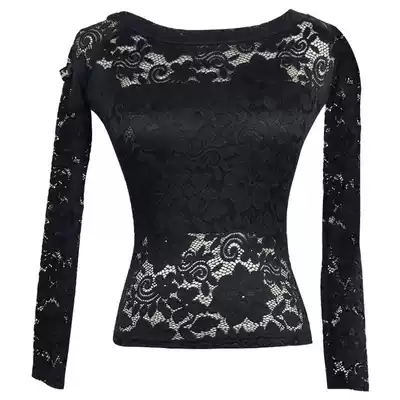 Female one-collar long sleeve (black lace) top