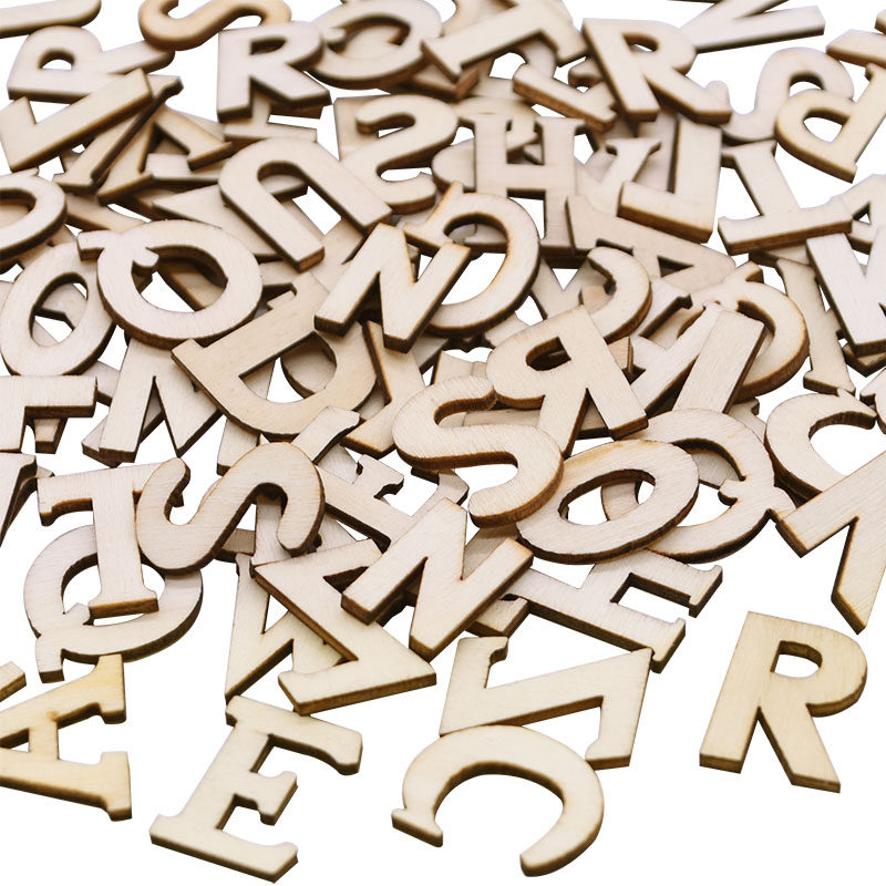 100 capsules DIY log color 26 mixed English alphabet children's educational puzzle toys wooden decorative pieces