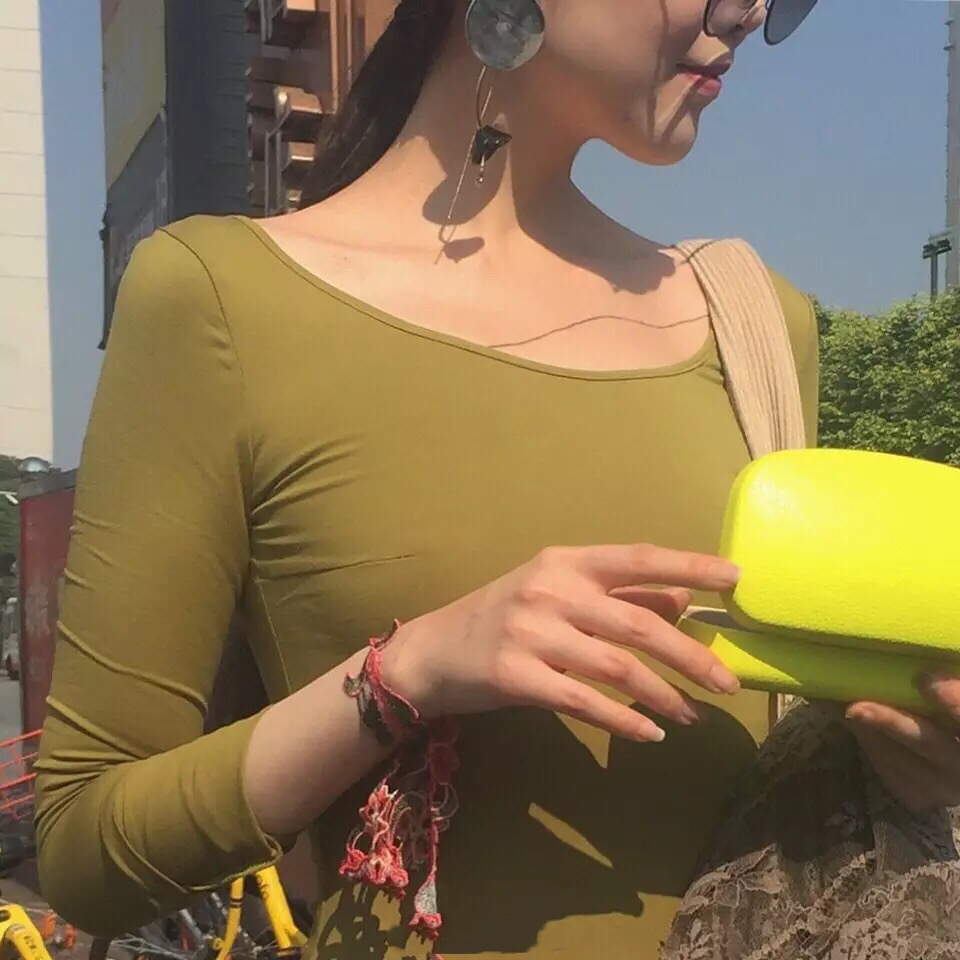 AY To films autumn retro green huifeng with the same salty vegetable green double U beating undershirt ballet T long sleeve blouse
