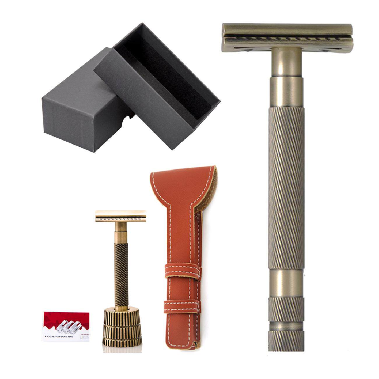 4-piece set razor manual razor old-fashioned double-sided razor razor hair clipper copper handle razor shaving