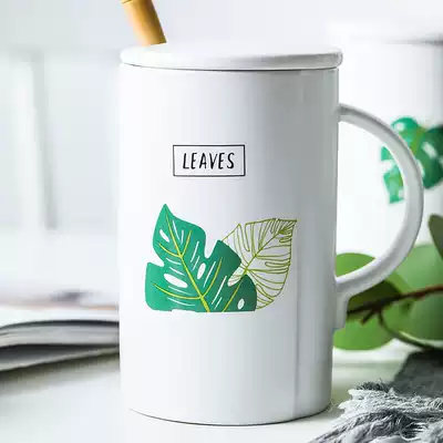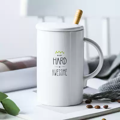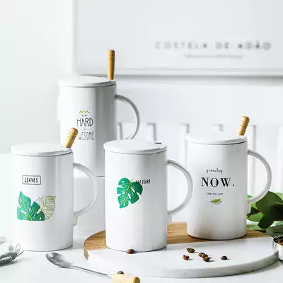 Mug with lid spoon large capacity ceramic cup Women's coffee cup Office water cup Nordic simple ins couple cup