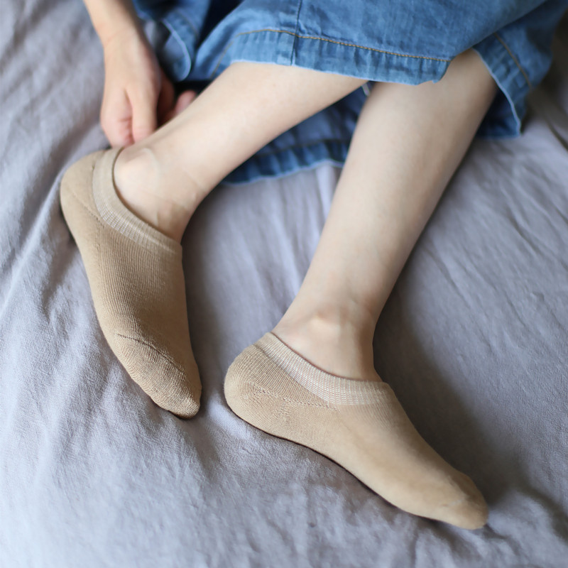 Original Combed Cotton Spring Summer Socks Lady Thickened Towel Invisible Socks Invisible Socks Short Light Mouth Socks Pure Cotton Pure Color Retro