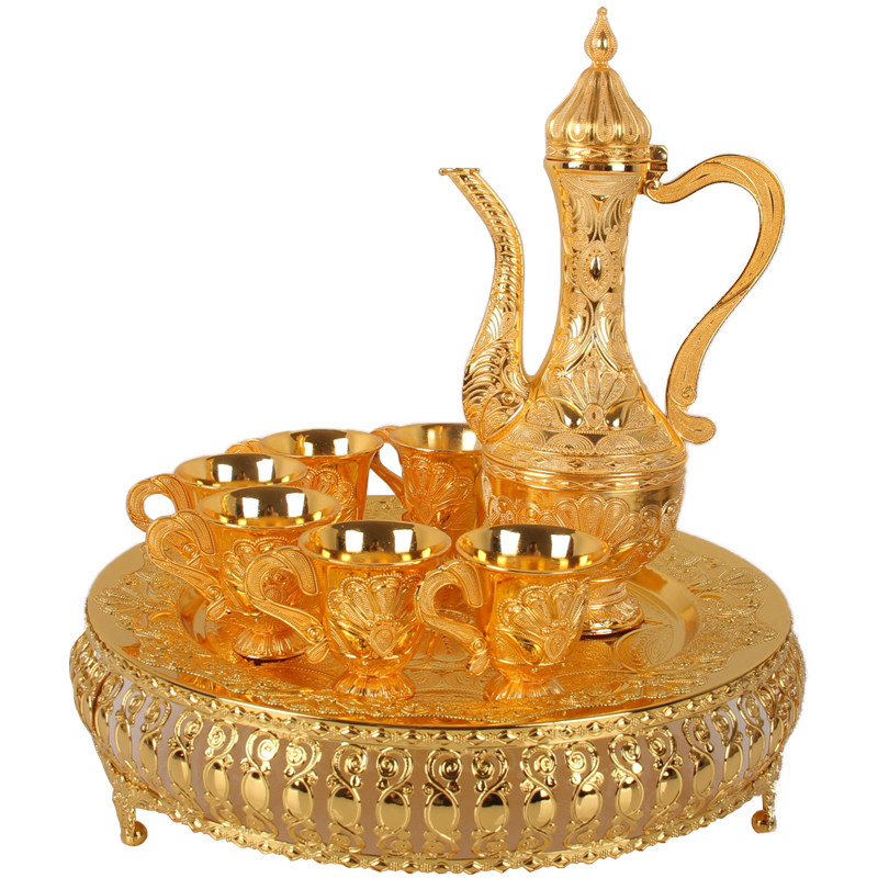High plate wine set Classical alloy wine jug Wine tray Full set of home decoration handicraft wine tasting set