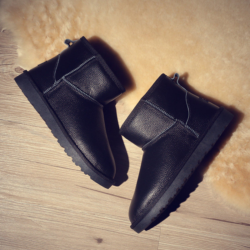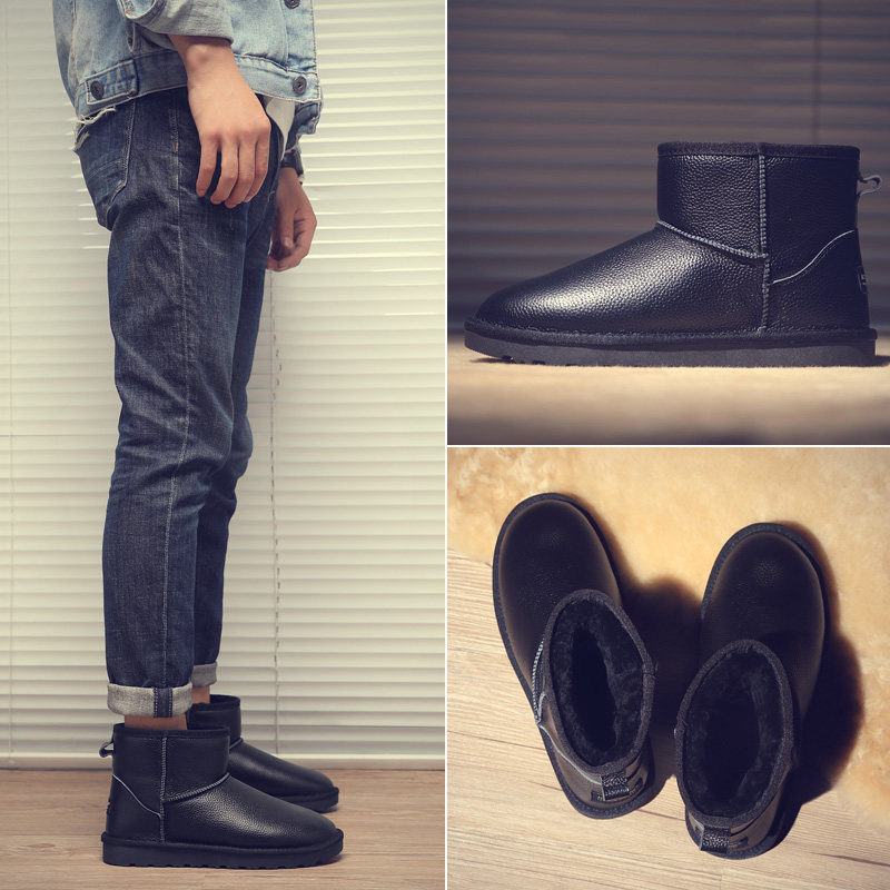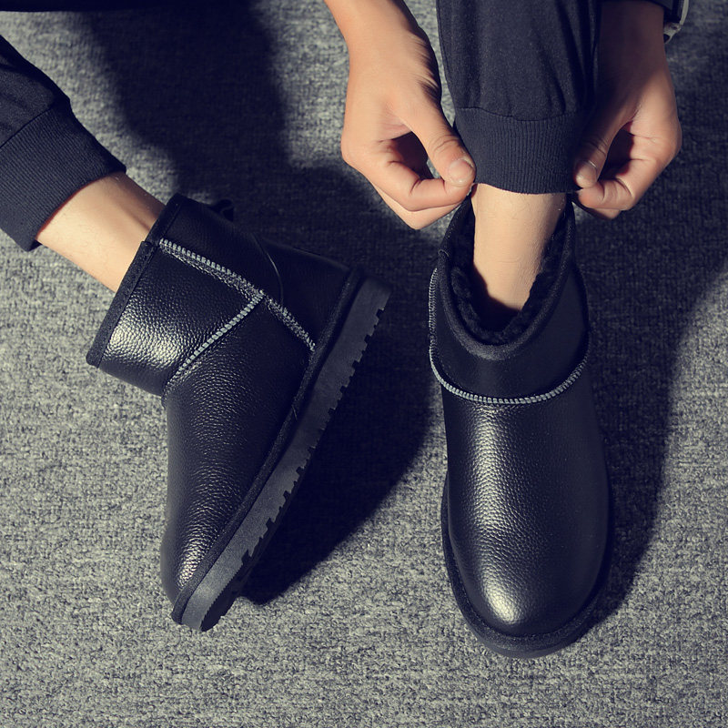 2022 new snow boots men's shoes waterproof short boots plus velvet warm cotton shoes trendy winter leather bread shoes