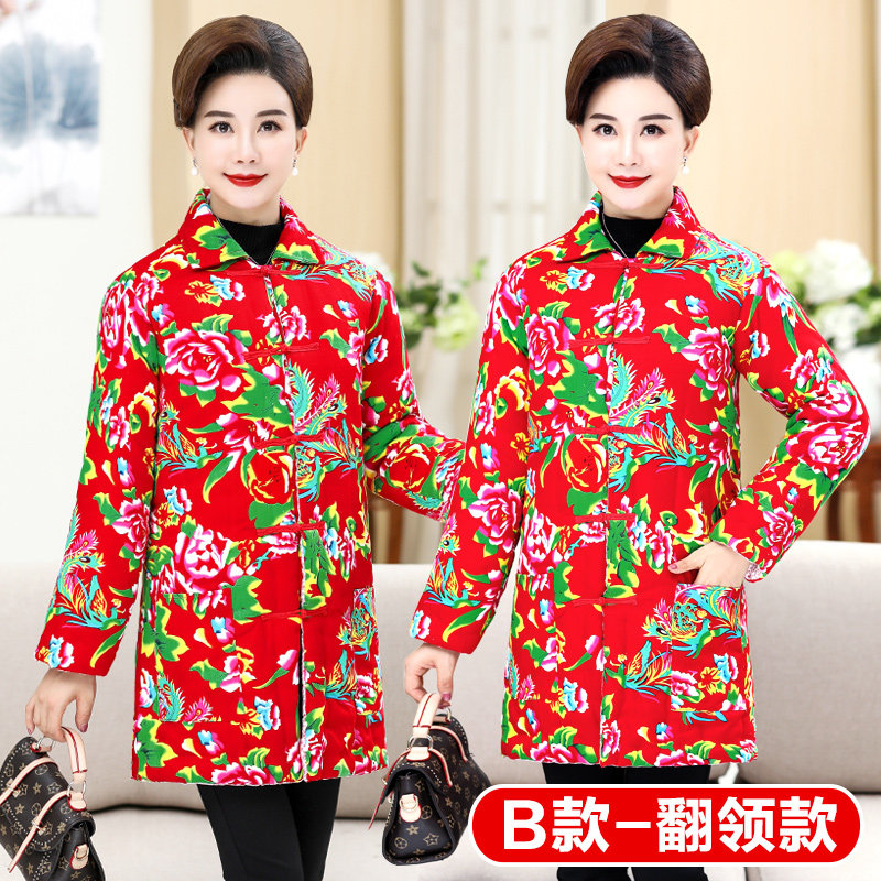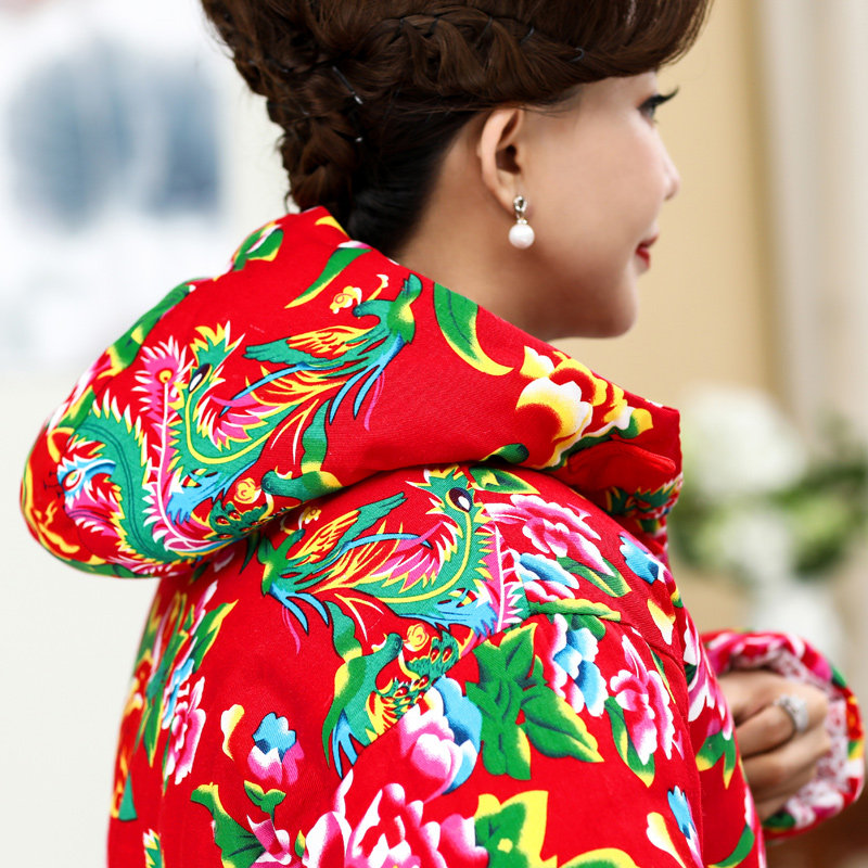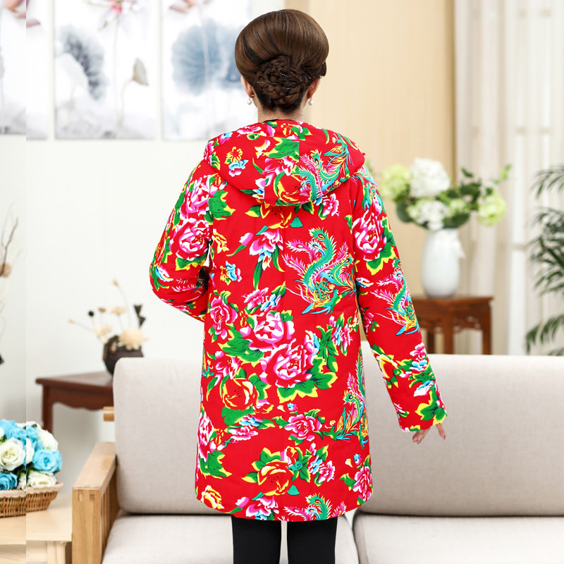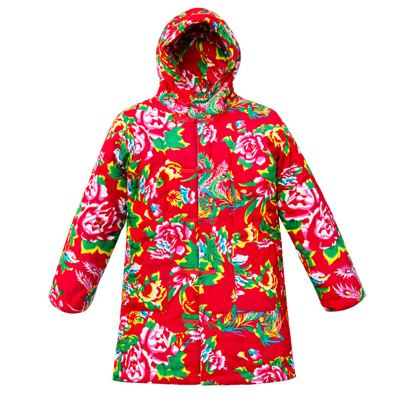 Medium and long version of ethnic style cotton Northeast large flower cloth cotton jacket men and women cotton handmade cotton coat thickened retro custom