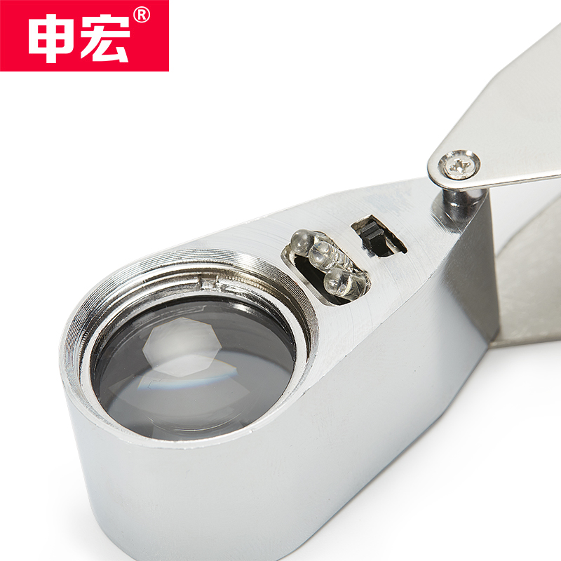 Shenhong handheld magnifying mirror 40 high multiple with LED lamp folding antique magnifying mirror HD jewelry diamond coin stamps pictured silver dollar 1000 cash verification optical expansion mirror portable