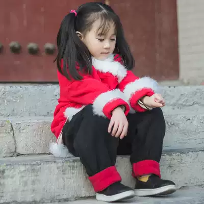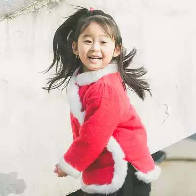 Winter children's cotton coat cotton linen cotton jacket cotton coat coat wool collar Chinese style New Year dress Chinese style red padded jacket