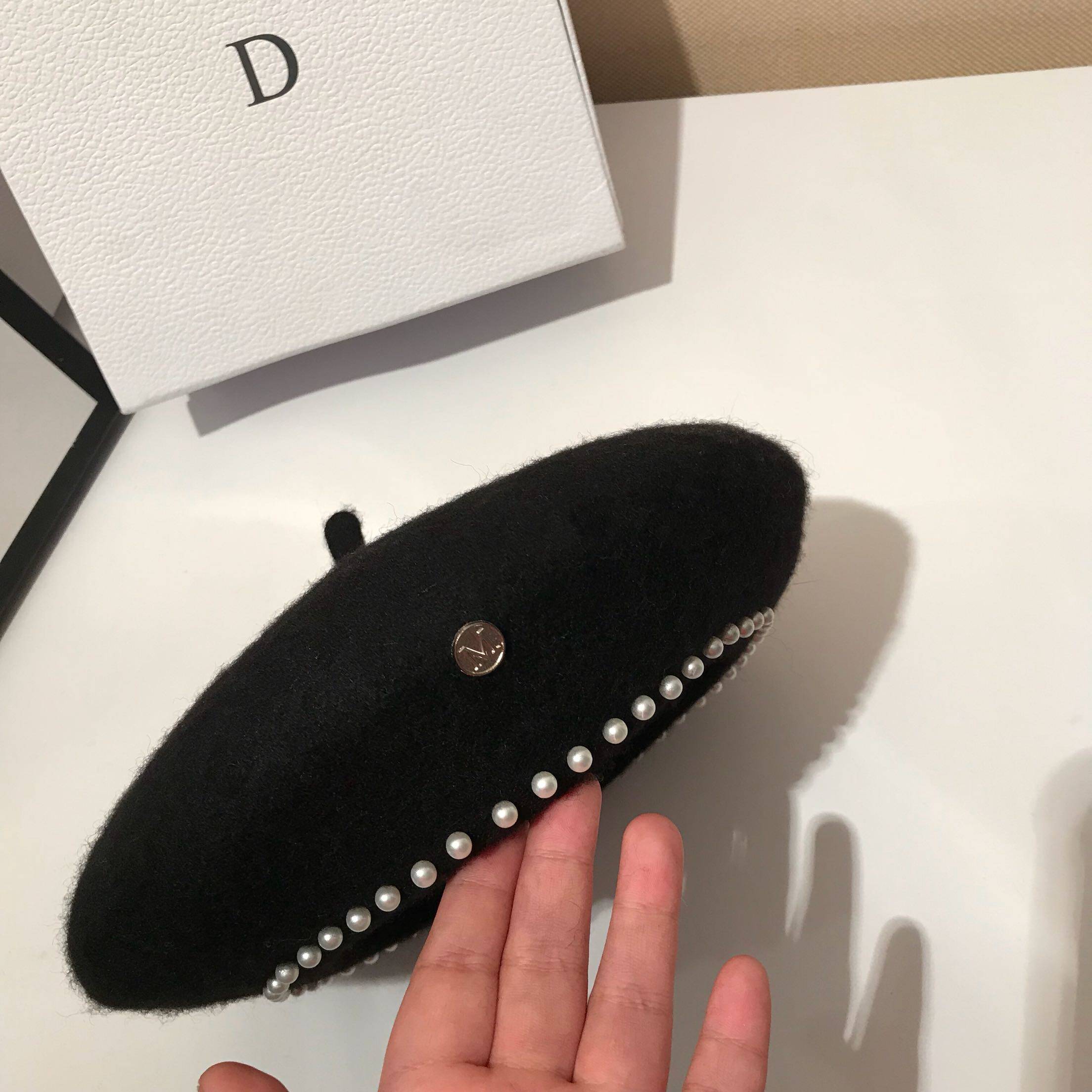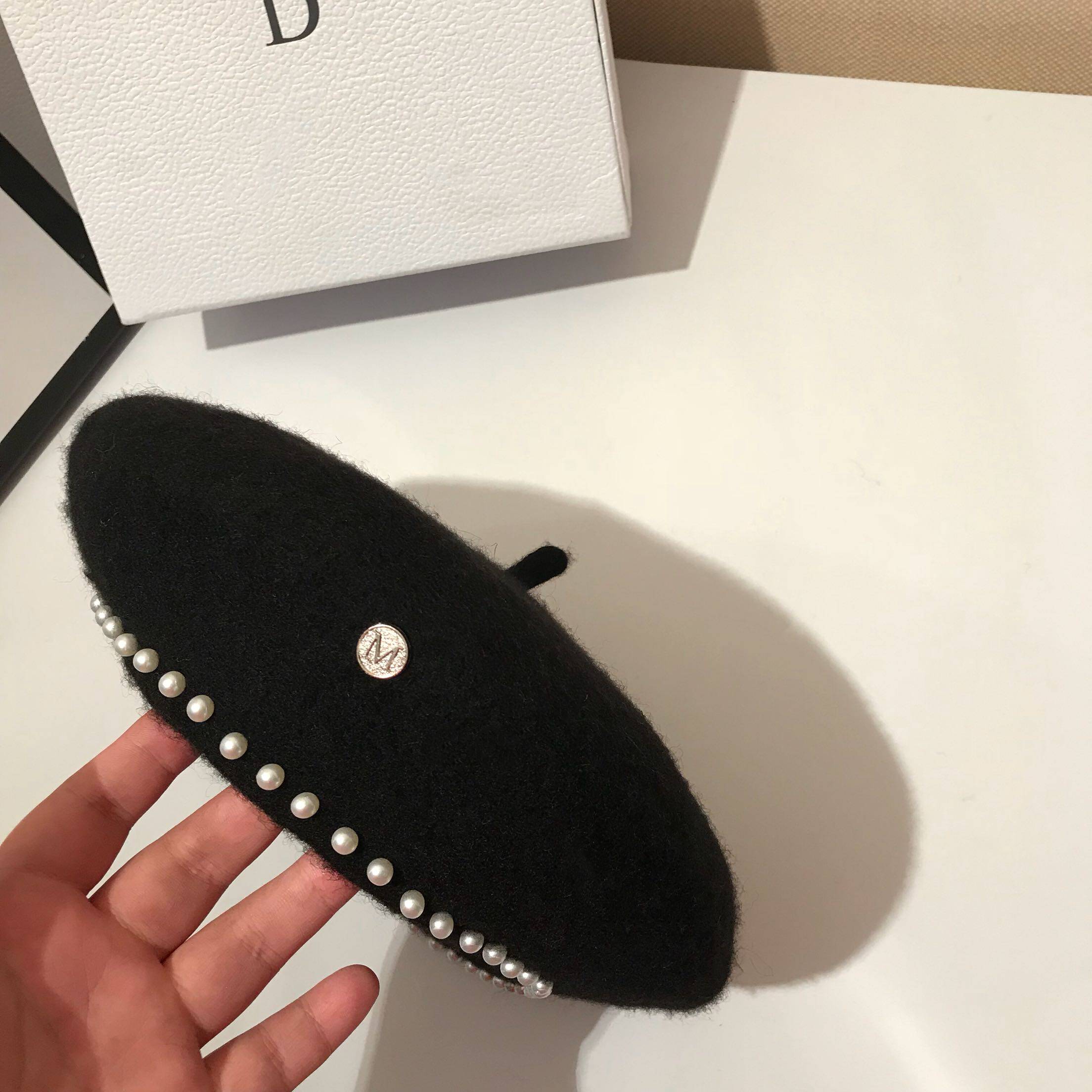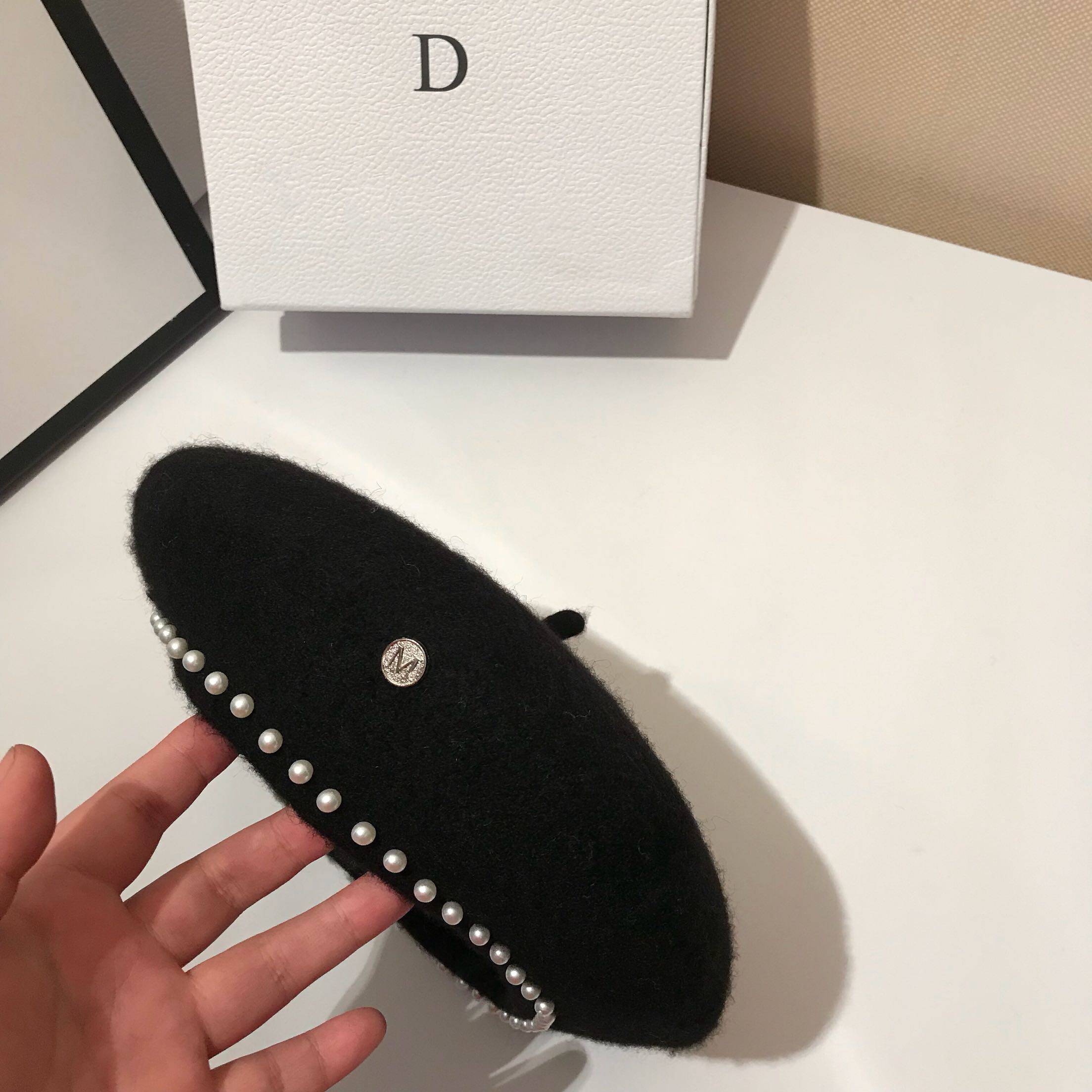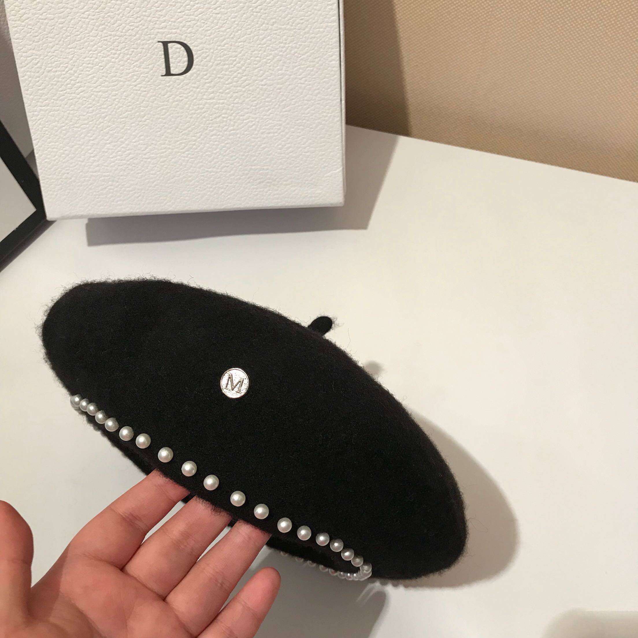 Beret female autumn and winter hair Japanese hat wild British pearl Bud hat modeling hat Simple painter hat tide