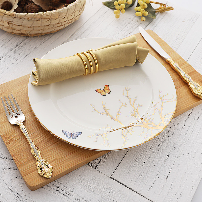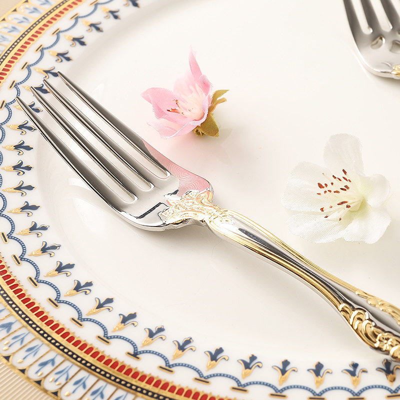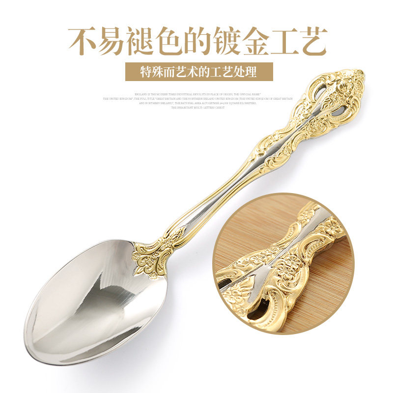 Western-style tableware set stainless steel steak knife fork spoon three-piece set European retro gold main meal knife fork small soup spoon