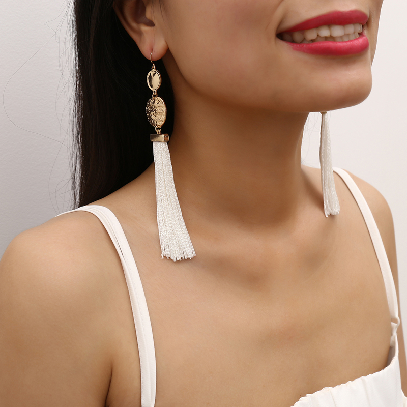String spike tassel earrings Female European and American temperament fairy Bohemian goddess charm long earrings
