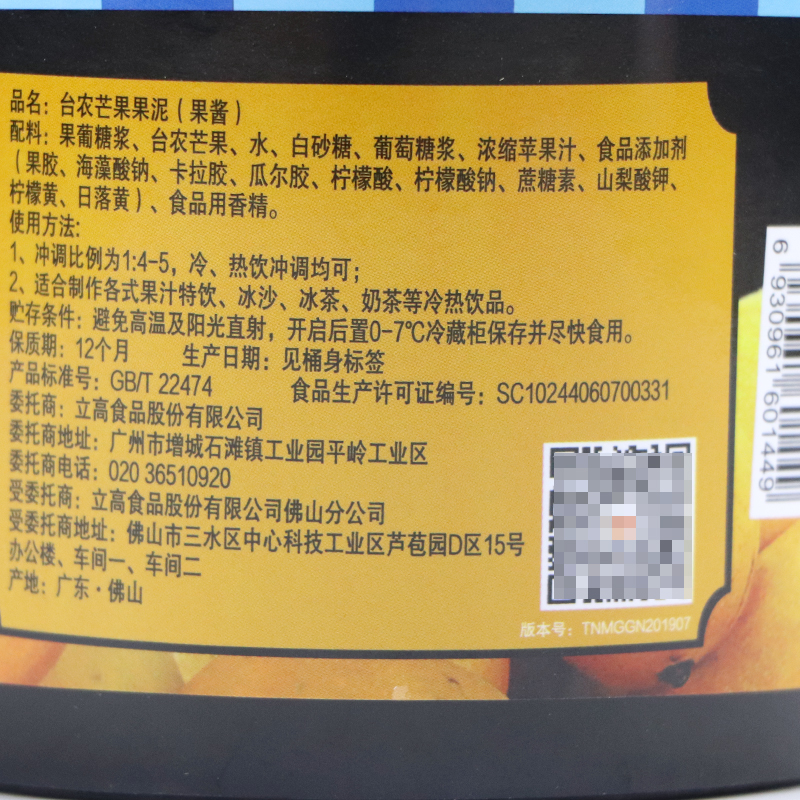 Xinxian Nitai Nong mango puree jam 1 36kg baked milk tea special fruit tea fruit mango jam