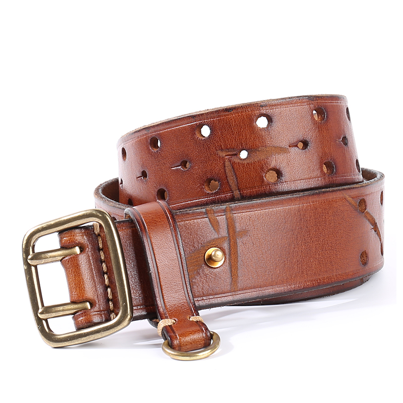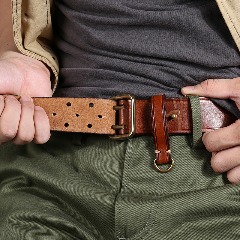 Old Fashioned Tannic Leather Strap Men's Head Layer Cow Leather Individuality Retro Belt Genuine Leather Two-Needle Days Buttoned Copper Pants Strap