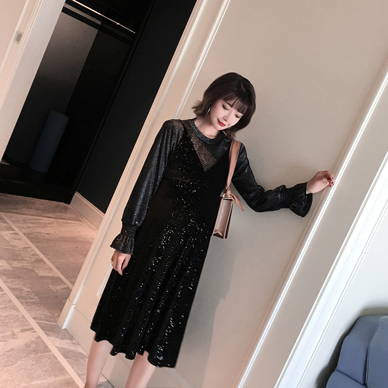 Pregnant women spring and autumn suit fashion models 2022 new bottoming suspender dress lace dress two-piece trend