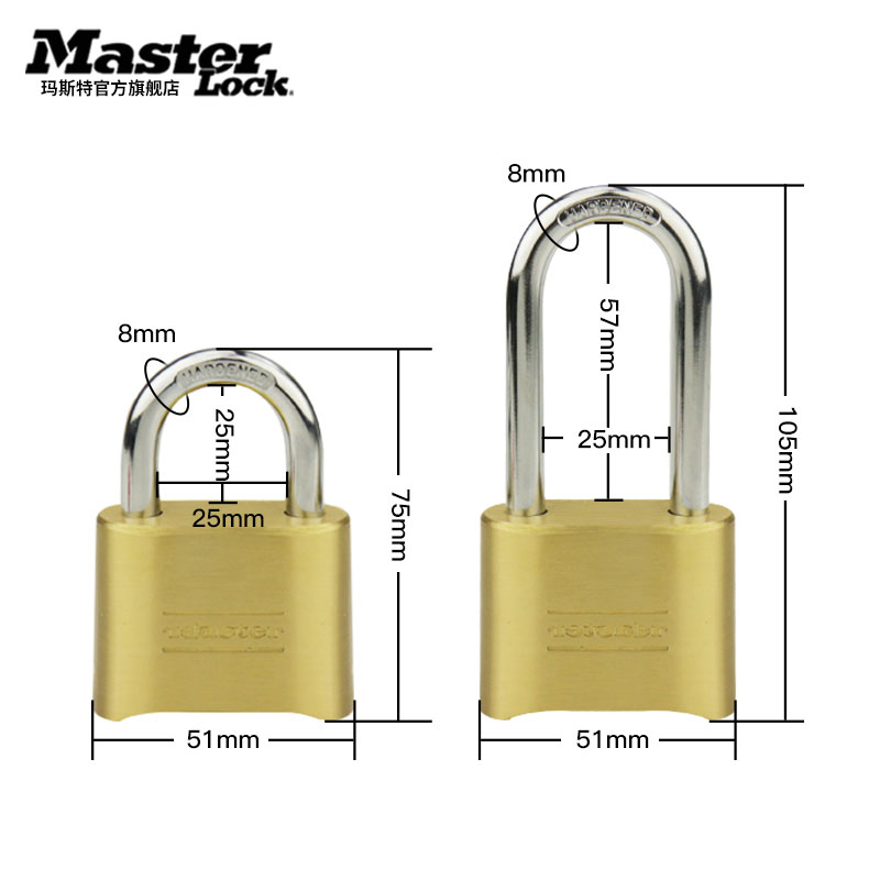 Master large password lock padlock cabinet lock home anti-175 extended hook brass warehouse door lock