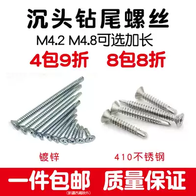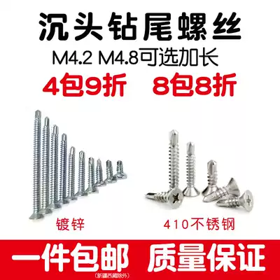 Flat head stainless steel drill tail screw cross countersunk head self-tapping self-drilling 50 60 length 8cm dovetail screw M4 2
