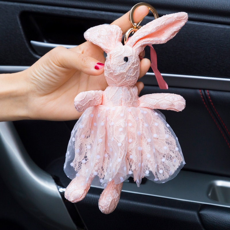 Car keychain Cute flannel rabbit keychain Fashion bag pendant Cute cartoon doll keychain