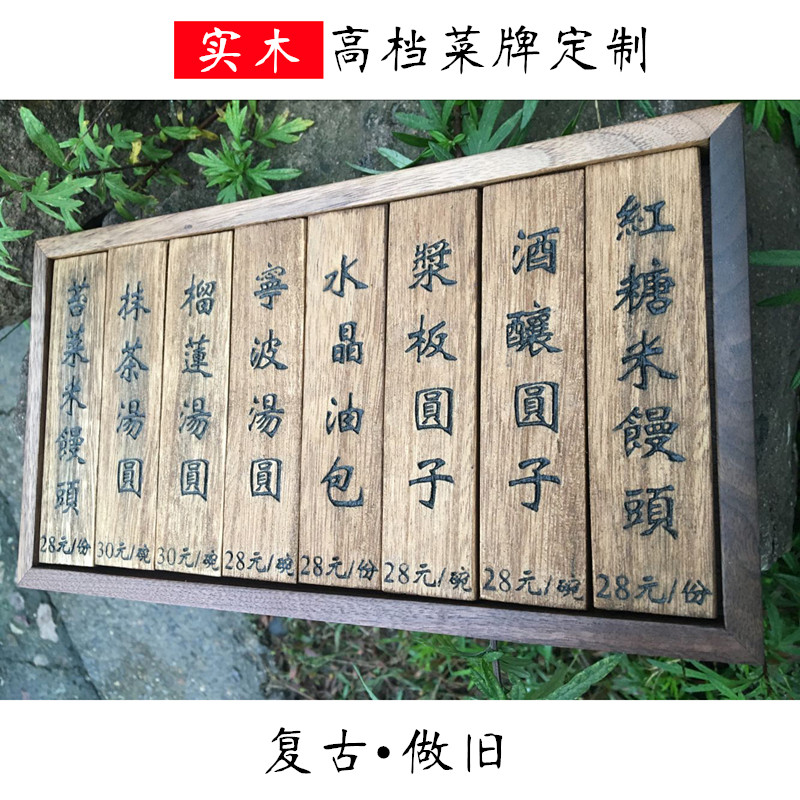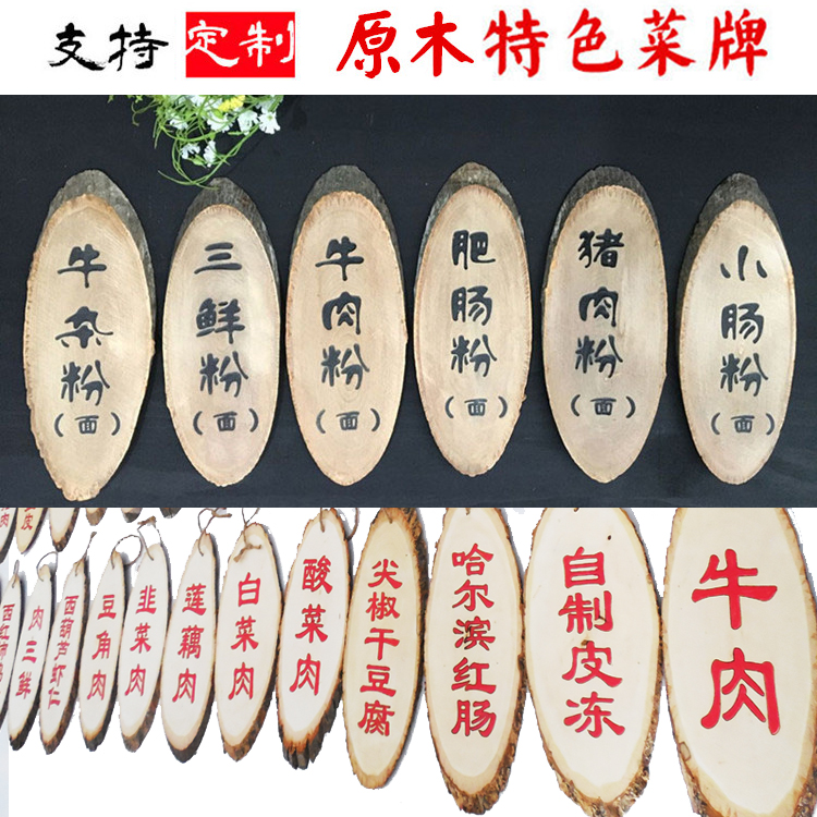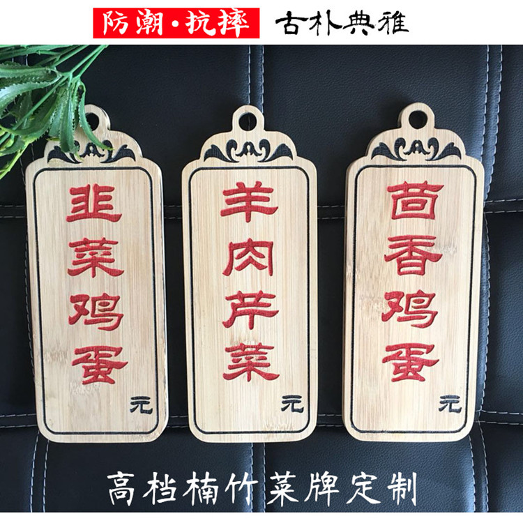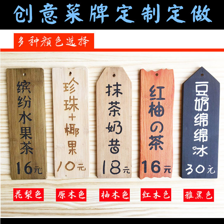 Chinese side dish brand carving restaurant milk tea store hall tag price list listing features Nanzhu wood price tag