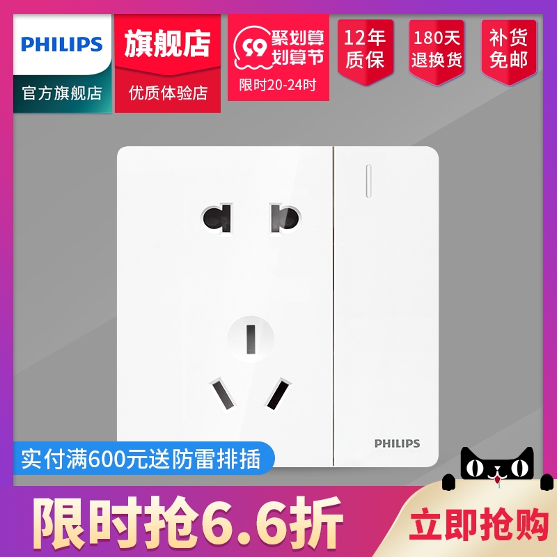 Philips Xinyi 86 household one-open five-hole socket two-three-pole plug-in switch panel wall light switch
