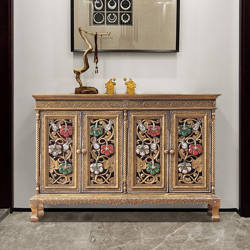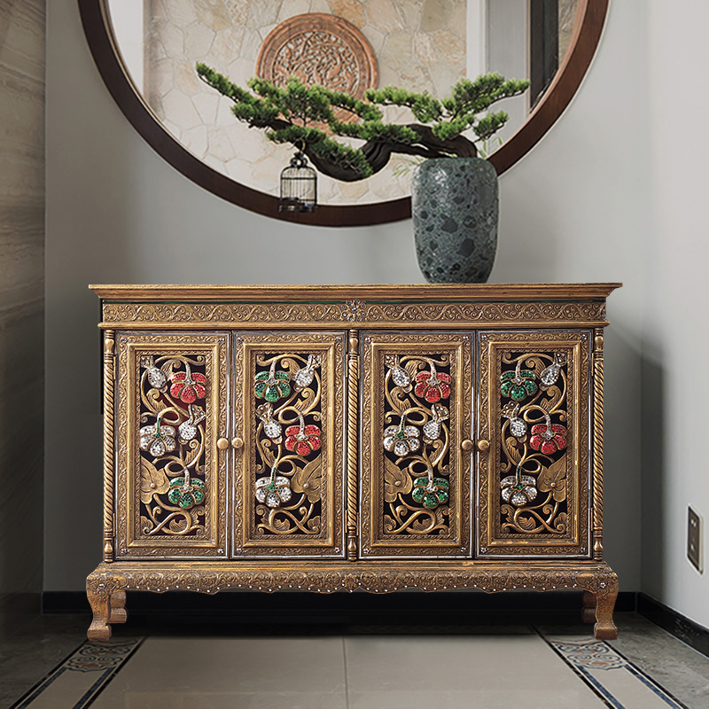 Taiyu Thai Lanna style solid wood carving porch cabinet Southeast Asia living room screen cabinet Storage cabinet furniture