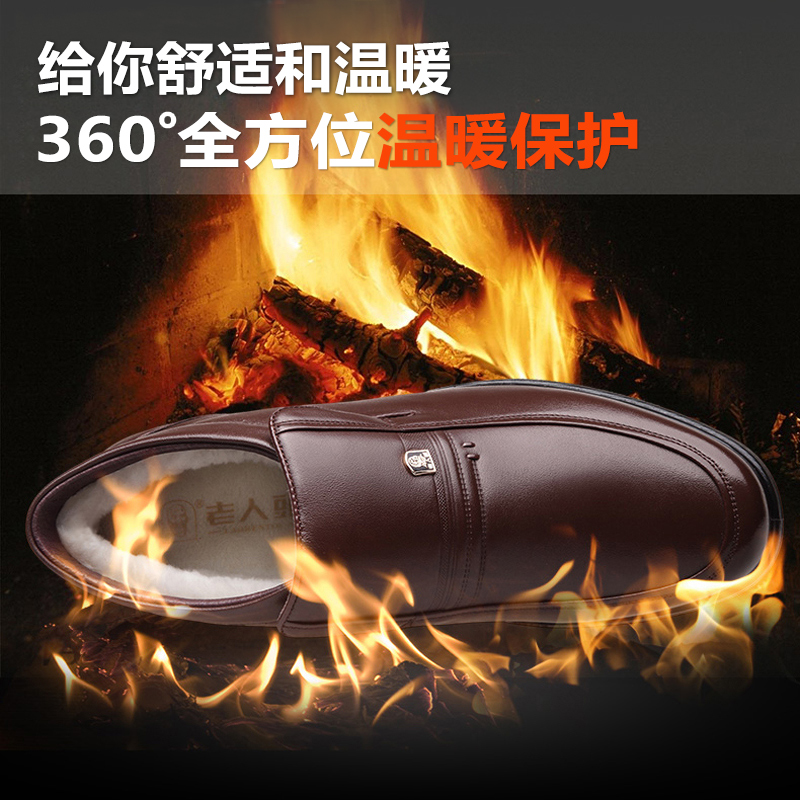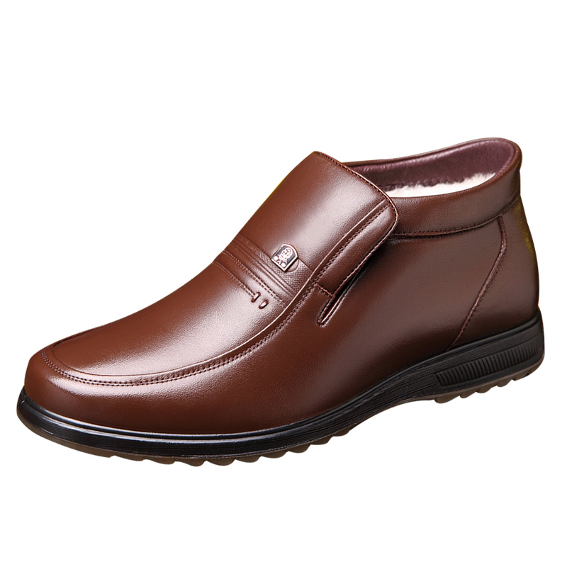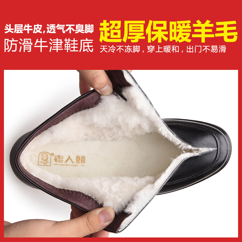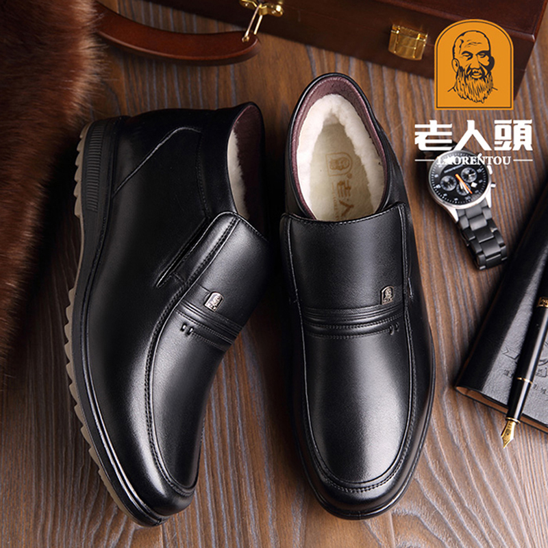 Old man's head cotton shoes men's winter genuine leather plus suede warm high helps cotton leather shoes Beef Tendon Bottom Middle Aged Dad Casual Shoes-Taobao