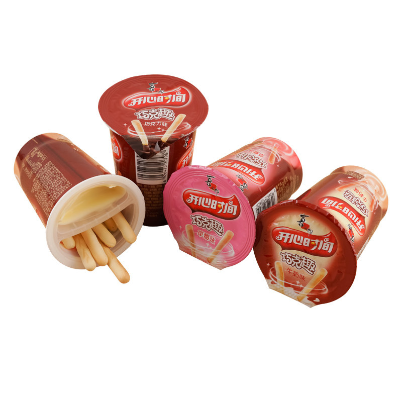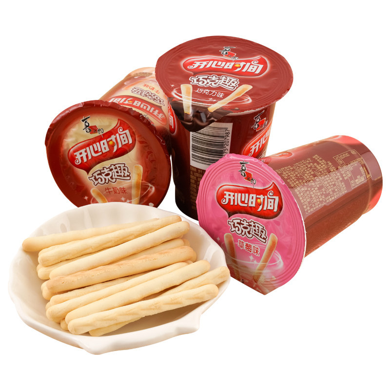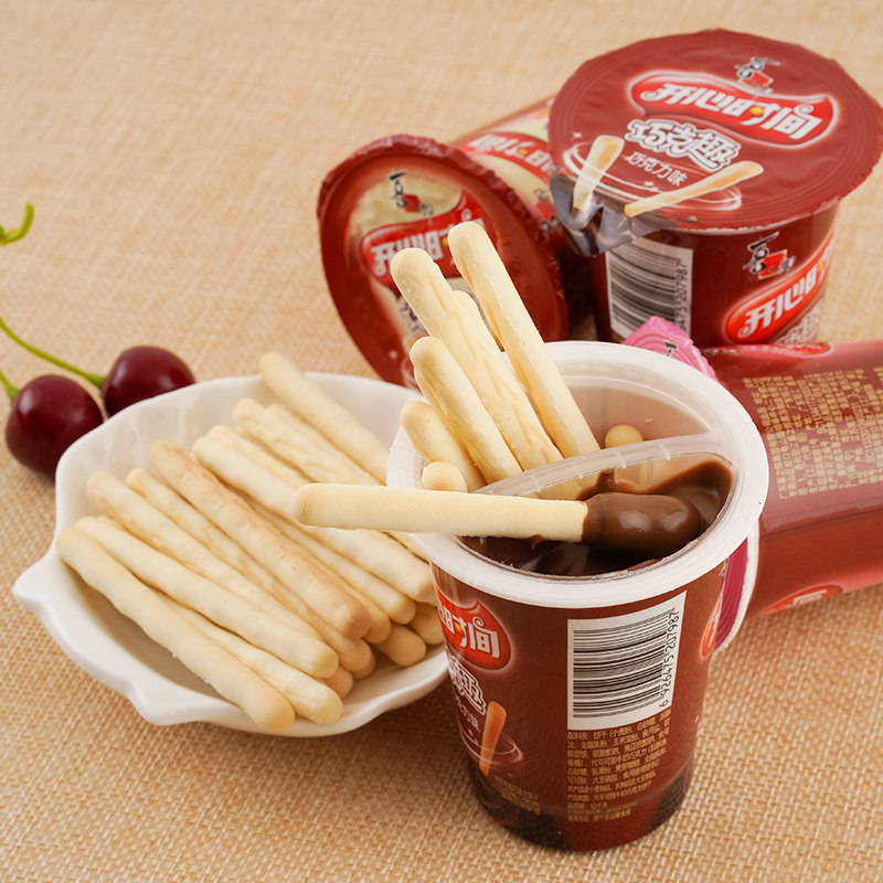 Happy time with fun time Kinterest 25g Single cup Loaded Milk Chocolate Strawberry Dip Sauces Finger Biscuit Snacks