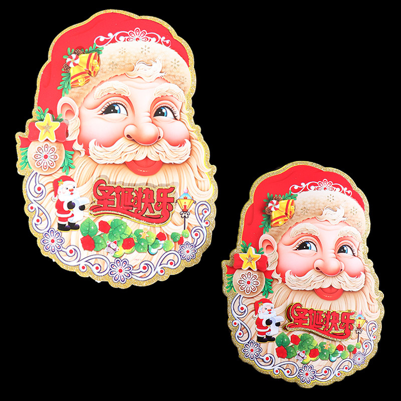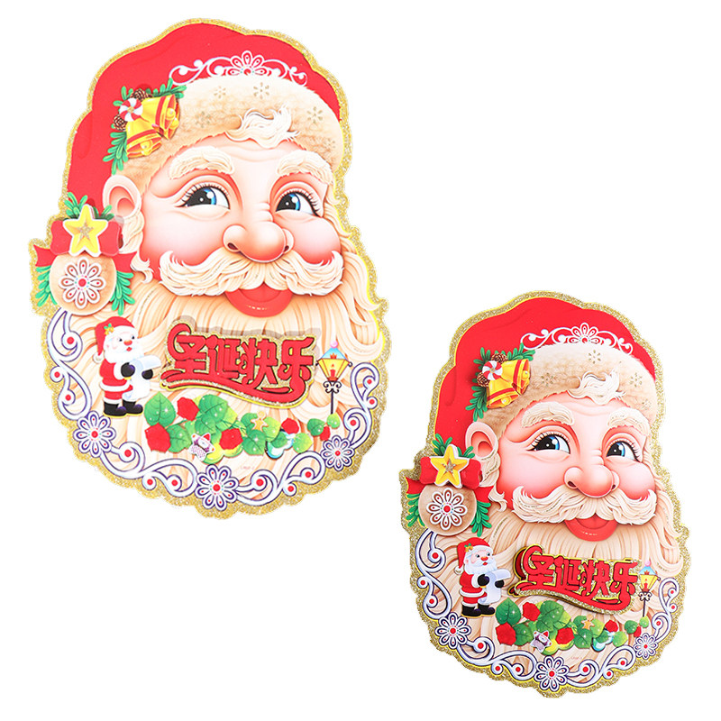 2 pieces of Christmas stickers Christmas storefront glass window color three-dimensional big head stickers Christmas decorations