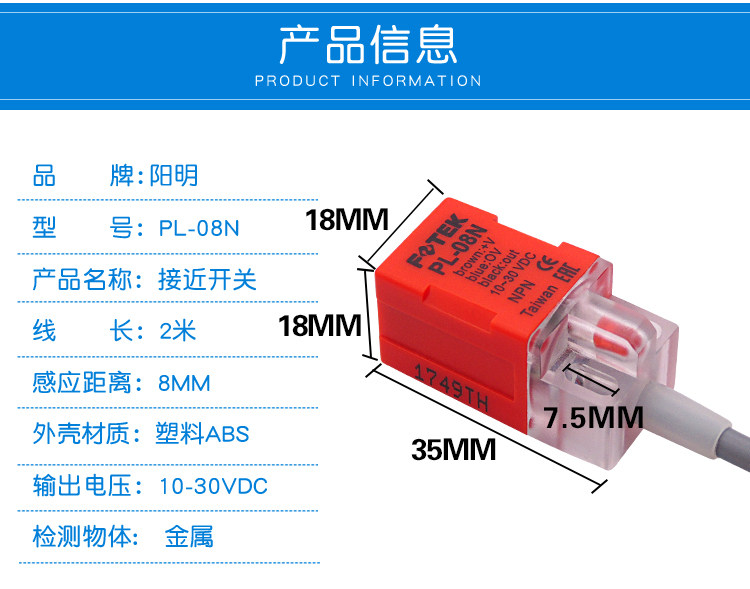 Original FOTEK Yangming proximity switch PL-08N three-wire sensor QL PL-08NB 08P PS-08N