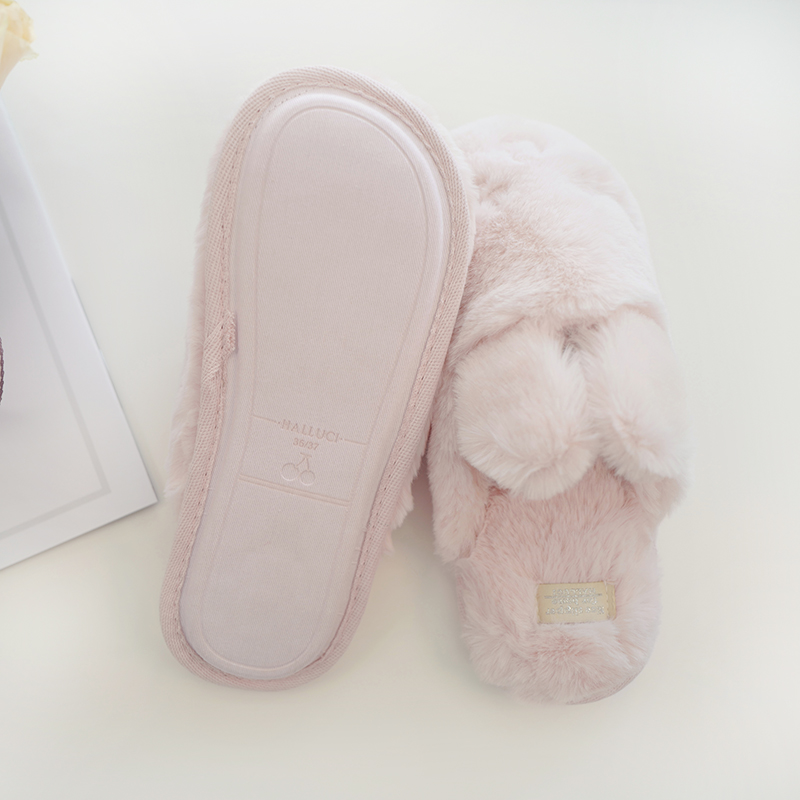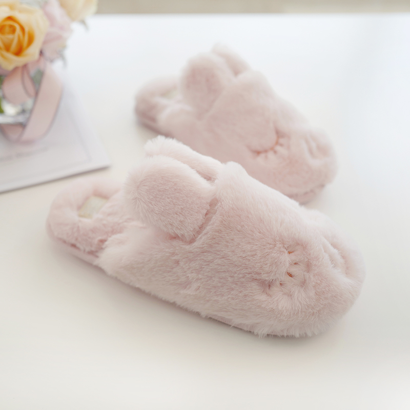 Tender Powder Small Rabbit Suede Soft Winter Warm Slippers Woman Wide version Squint Eye Sprinkled Rabbit Cute Indoor slippers female